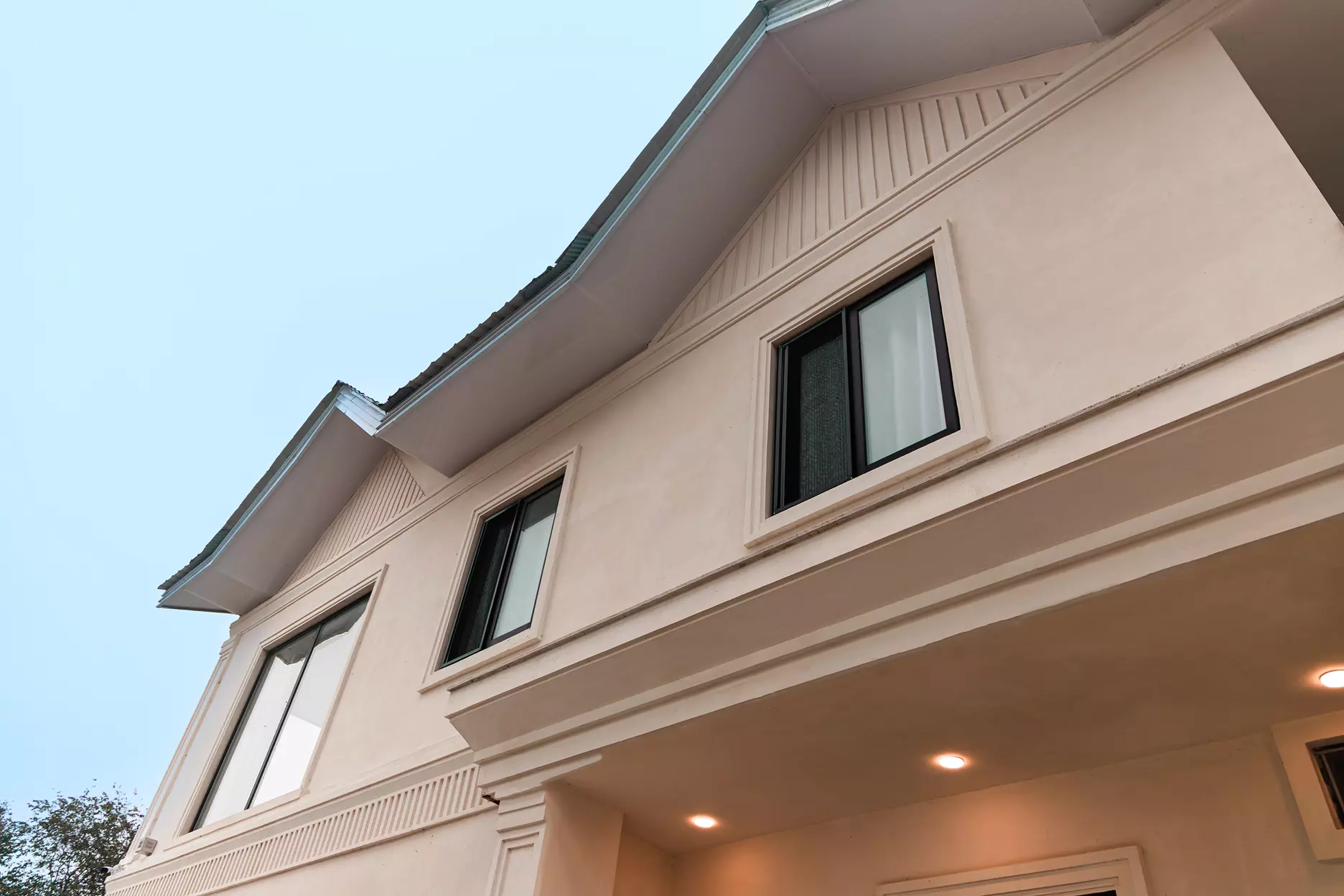 در این ویلا، طراحی و اجرای کامل دربها و پنجرهها با سیستم ترمال بریک به صورت اختصاصی توسط گروه پایا انجام شده است. در تمام بخشهای ساختمان از پروفیل ترمال بریک با رنگ آنادایز مشکی مات استفاده شده تا هماهنگی بصری با نما و دکوراسیون داخلی حفظ شود.
